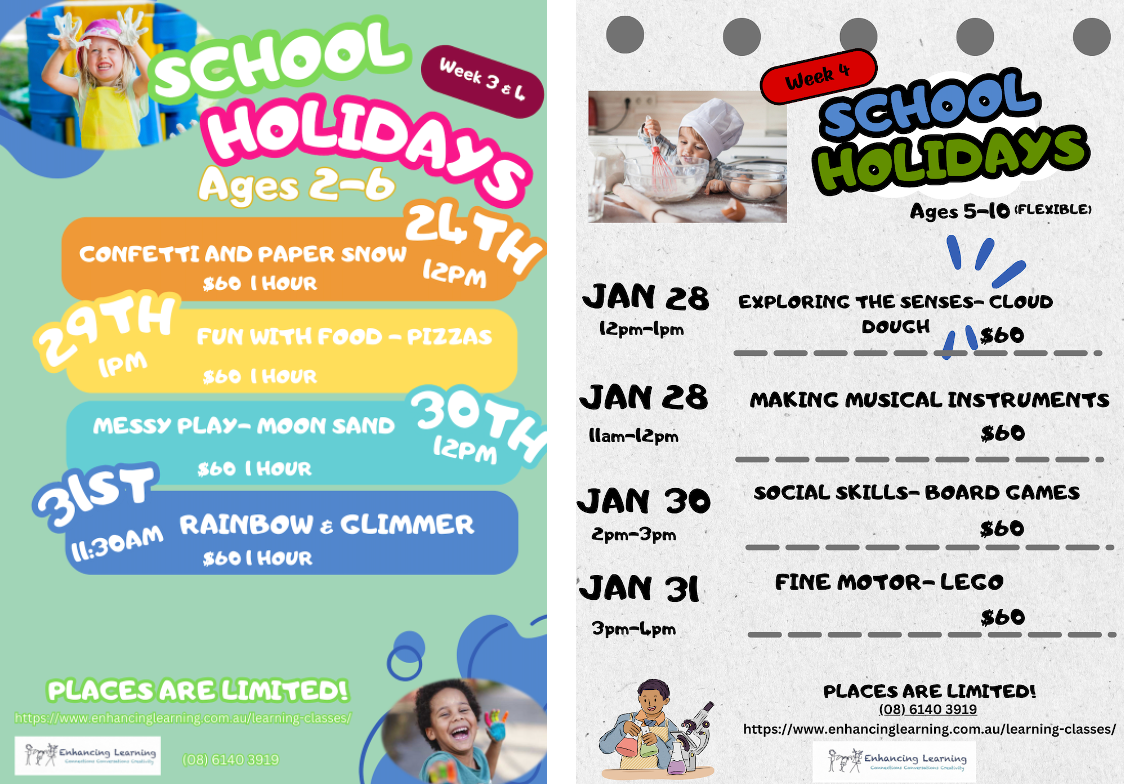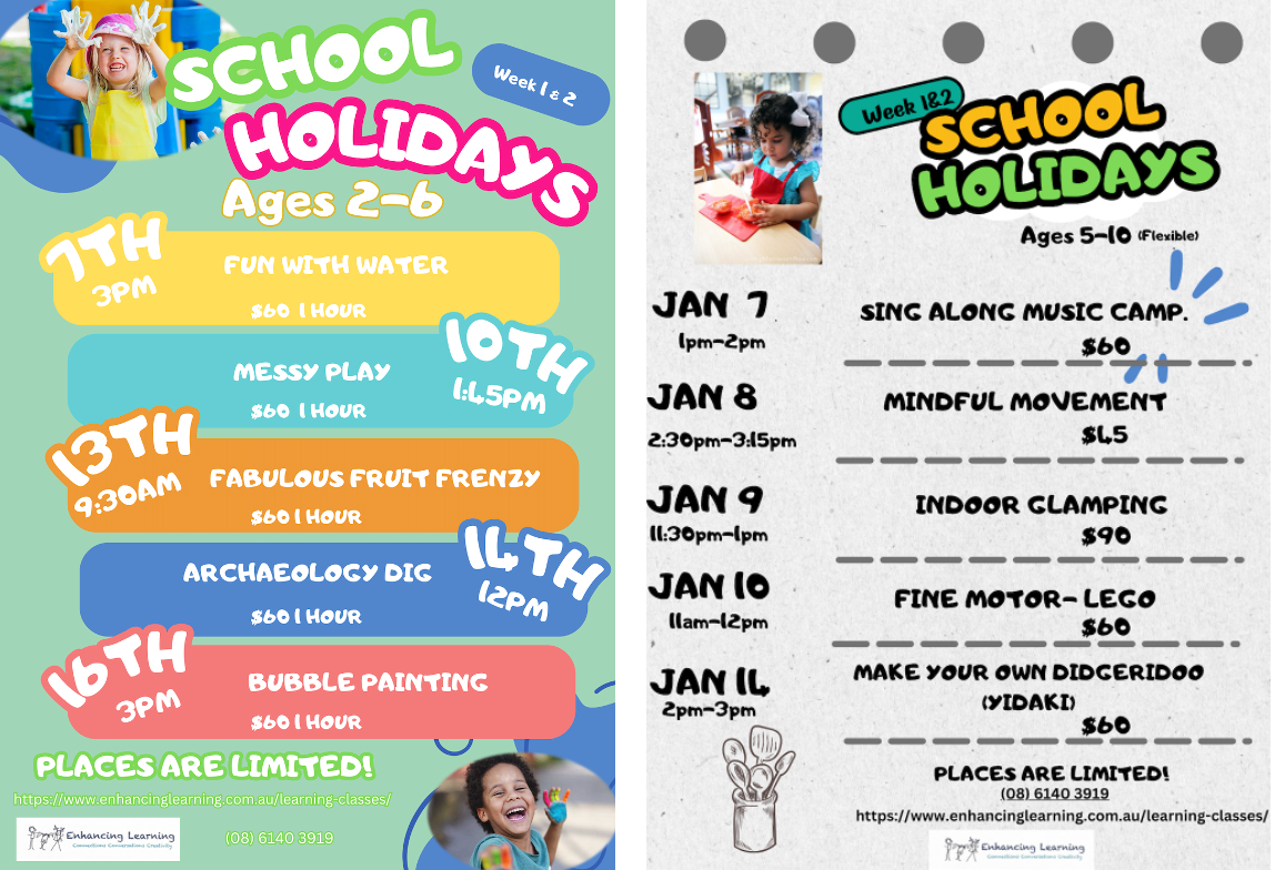 Join the Enhancing Learning team for play-full learning sessions to help develop your child's creativity, conversations and making connections with other children.